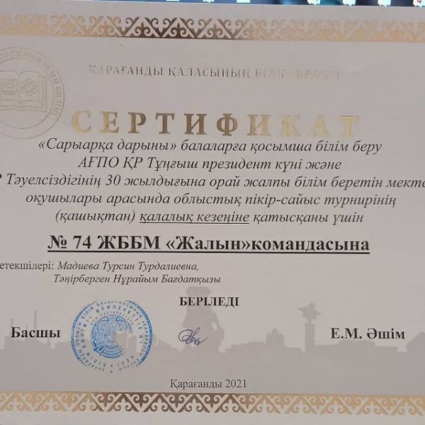 74 ЖББ мектептің 10 "А" сыныбында "Адалдық сағаты"бойынша сынып сағаты өткізілді. Оқушылар Қазақстан КТА Одағының президенті Есентүгел Елеукенмен ұйымдастырылған сұхбатын тыңдап,…