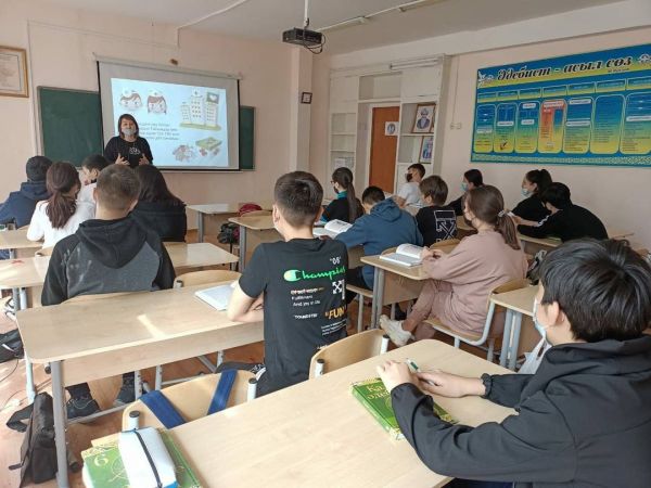 Мектептің 9 сынып оқушыларымен 7-сәуір Дүниежүзілік денсаулық күніне "Біздің денсаулығымыз" тақырыбында, салауатты өмір салтын қалыптастыруда алдын алу психологиялық сабақты педагог-психол…