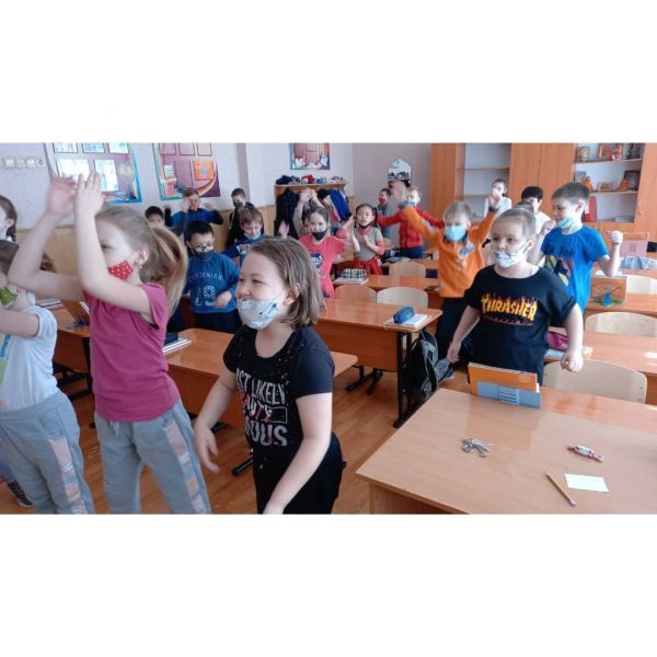 1 В класс приняли участие во Всемирном дне здоровья и провели "Весёлую зарядку" на 1 уроке.