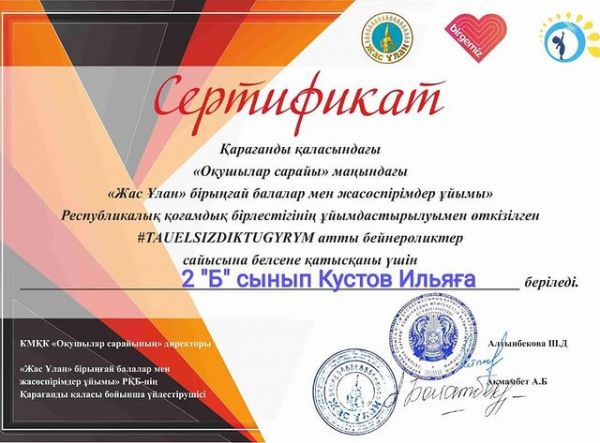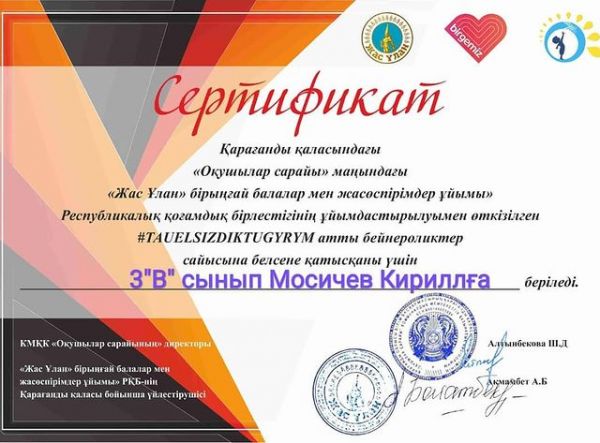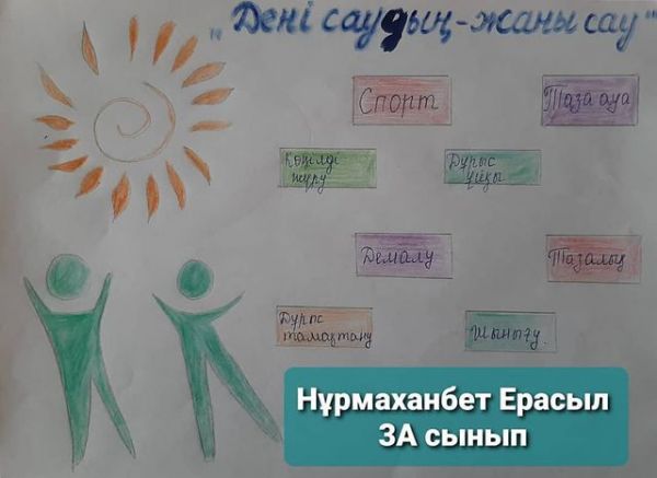 "Денің сау болса, бәрін аласың" дене шынықтыру апталығы аясында 3"А" сыныбы "Дені саудың-жаны сау" сурет байқауына қатысты. Сынып жетекшісі:К.К.Аймышова