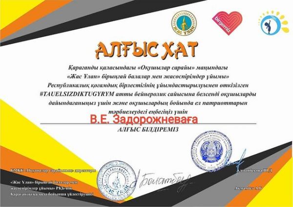 Қарағанды қаласындағы "Оқушылар сарайы" маңындағы "Жас Ұлан" бірыңғай балалар мен жасөспірімдер ұйымы" Республикалық қоғамдық бірлестігінің ұйымдастыруымен өткіз#Tauelsizdik…