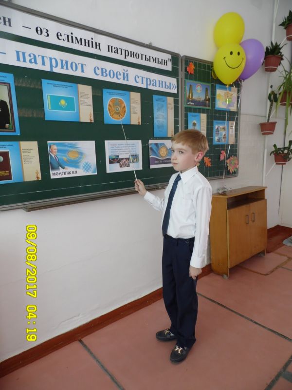 02 қыркүйек 2017 жылы 3В сыныбында Білім күніне арналған «Мен- өз елімнің патриотымын» атты сынып сағаты өткізілді. Оқушылар берілген тапсырманы топқа бөлініп орындады (патриотқа тән қас…