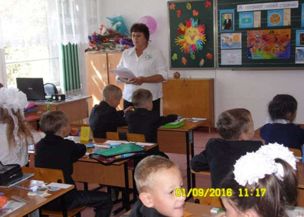 2016 жылдың 1 қыркүйегінде 1 В оқушылары мектеп табалдырығын алғаш аттап « Мен – өз елімнің патриотымын» алғашқы сабақтарына қатысты. Сабақ өте әсерлі, қызықты өтіп, оқушылар…