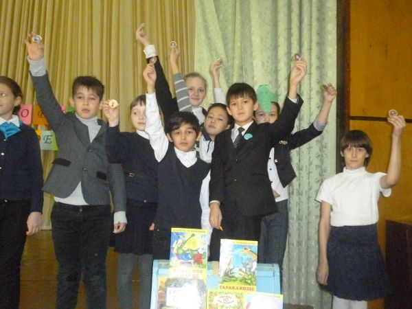 Бастауыш сыныптар апталығы аясында, 27.01.2016 ж. 4 сынып оқушылары үшін бастауыш сынып мұғаліміЧура Е.Л. К.И. Чуковский ертегілері бойынша викторина өткізді. Оқушылар жазушының шығармаларын қалай б…