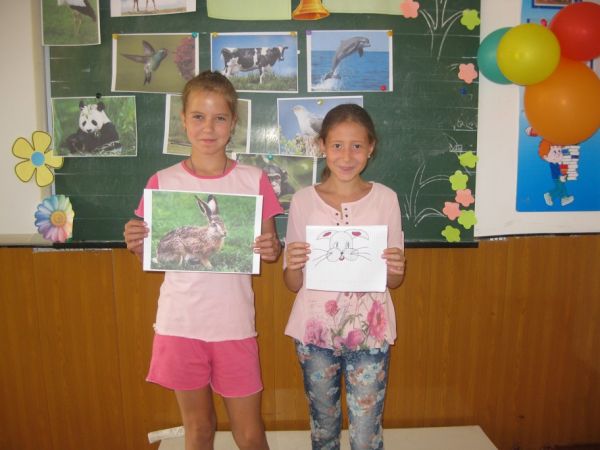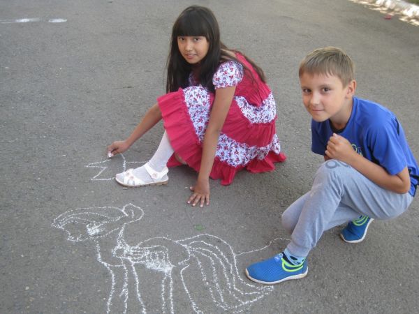 На уроке русского языка проверочный диктант «Творчество И.Левитана» показал хорошие знания учеников в орфографии. А проведенный конкурс рисунков на асфальте «Мир глазам…