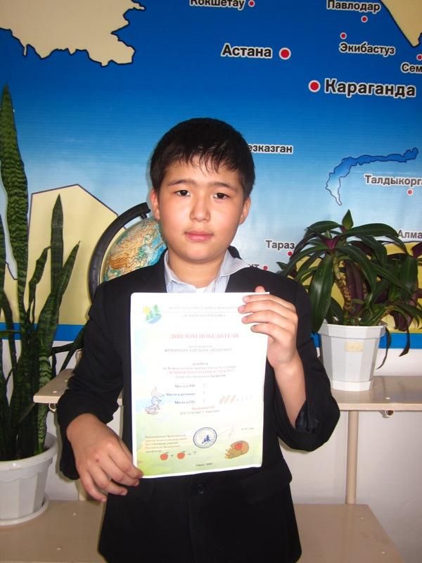 3 Б сынып оқушылары Жалпыресейлік "Зеленая математика" математикалық турниріне қатысты. Жуманбаев Адильбек 1 орынды иеленді. 4 орын – Аитов Тимур, Ковальчук Полина, Суровцева Елизаве…