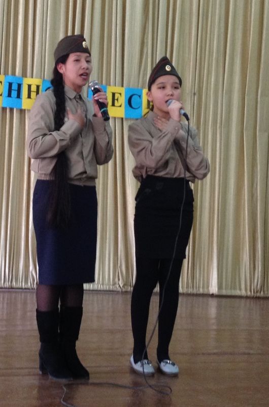 2015 жылдың 2 мамырында мектептің 6 А сынып оқушылары "1941-1945 ж.ж. Ұлы Отан соғысының Жеңісіне 70 жыл" мерейтойлық медалімен марапатталған тыл ардагерлері Адаева Раиса Ивановна мен Фили…