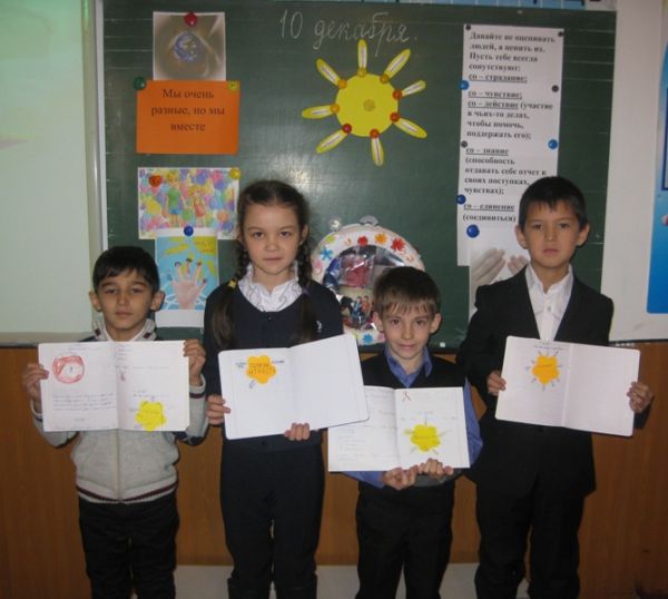 10 декабря 2014 года в 3 В классе прошел классный час на тему «Один мир, одна страна, одна дружба». Учащиеся поняли, что, несмотря на то, что все они разные, в классе м…