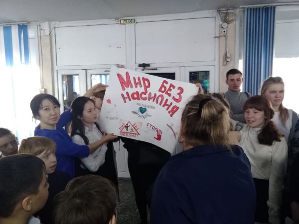 2019 жылғы 13 наурыздағы № 82 орта мектепте 1-11 сынып оқушылары үшін кең ауқымды «Зорлықсыз әлем» акциясы өткізілді.