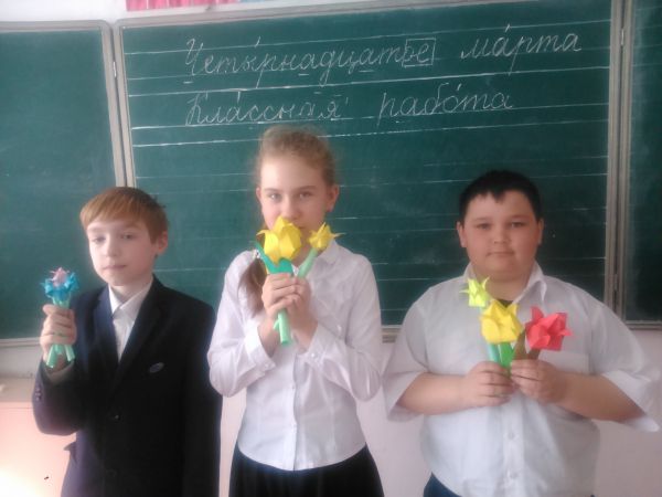 2019 жылдың 14 наурызында 4 В сыныбында еңбек сабағы өтті, бұл сабақта оқушылар қызғалдақ гүлін жасады.