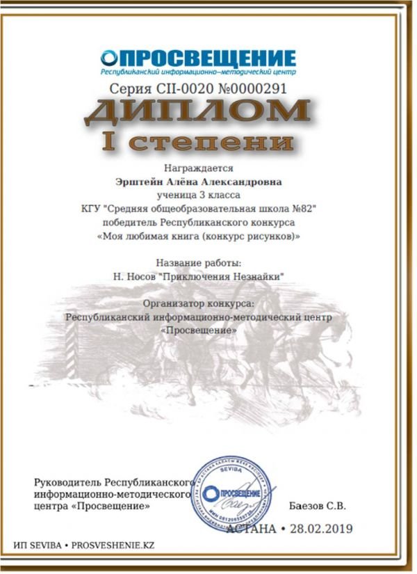 1 В сынып оқушысы Генс Софияны «GRAVITY» халықаралық конкурстық фестивалінде І орынды және 2019 жылы Қарағанды қаласы және Қарағанды облыстарының 7-ші чемпионатында II орынды и…