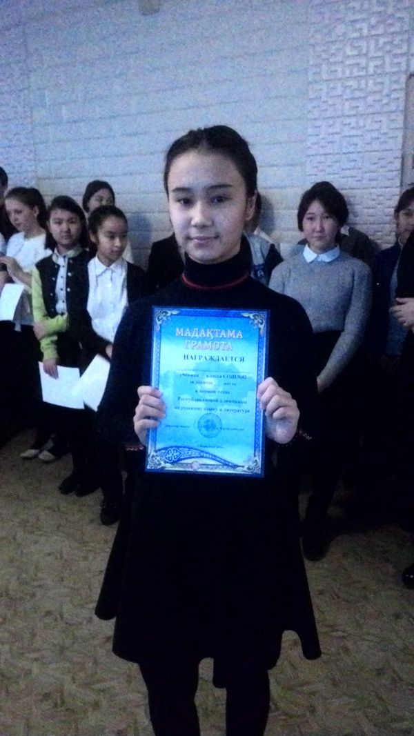 2016 жылдың 9 қараша айында мектеп оқушылары І Республикалық олимпиадаға қатысып, орын алғандары үшін грамотамен марапатталды.