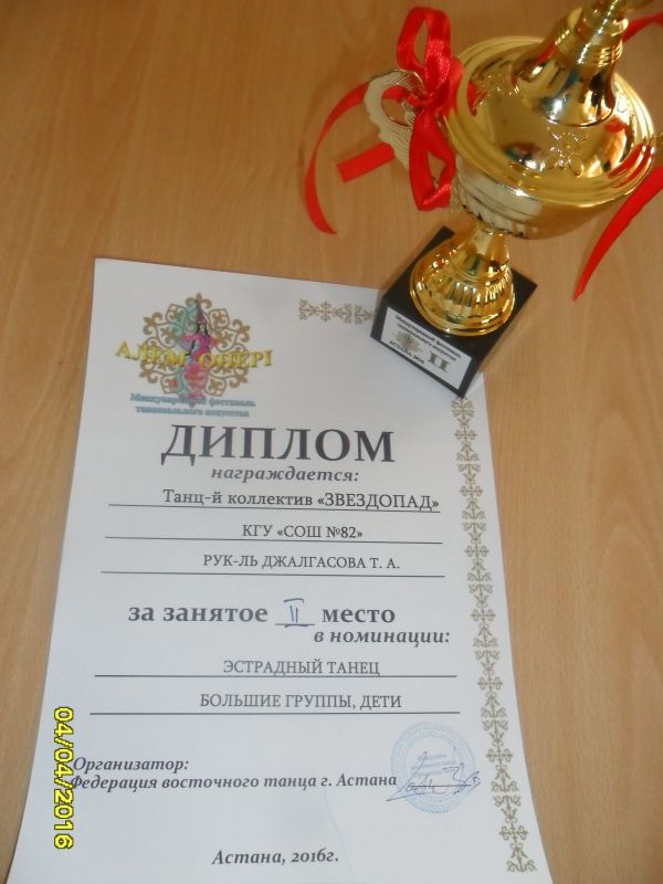 2 апреля 2016 года танцевальный коллектив «ЗВЕЗДОПАД» принял участие в международном фестивале танцевального искусства «Алем Өнері» в г. Астана, где коллект…