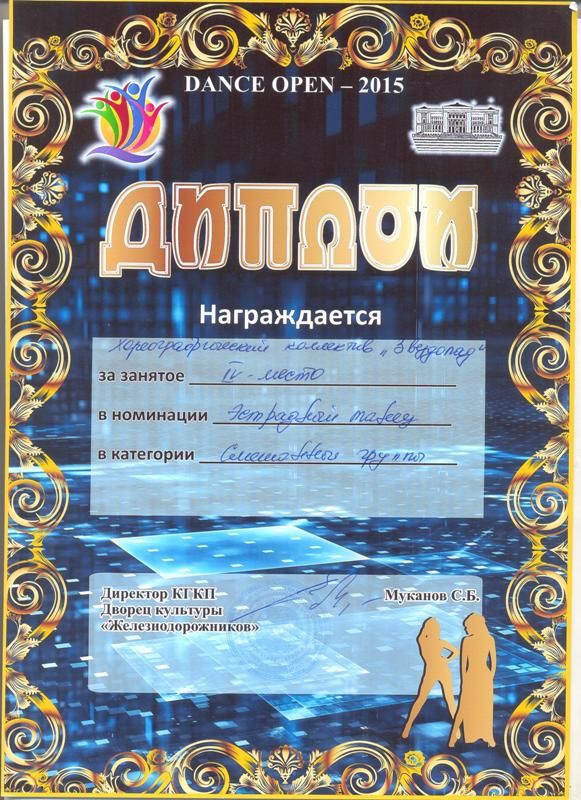 2015 жылдың 18 қазанында «Звездопад» би ұжымы Теміржолшылар Мәдениет үйінде өткен«DANCEOPEN-2015»қалалық би сайысына қатысты. Бұл сайыста би ұжымы екі жүлделі орынға иеленді:…