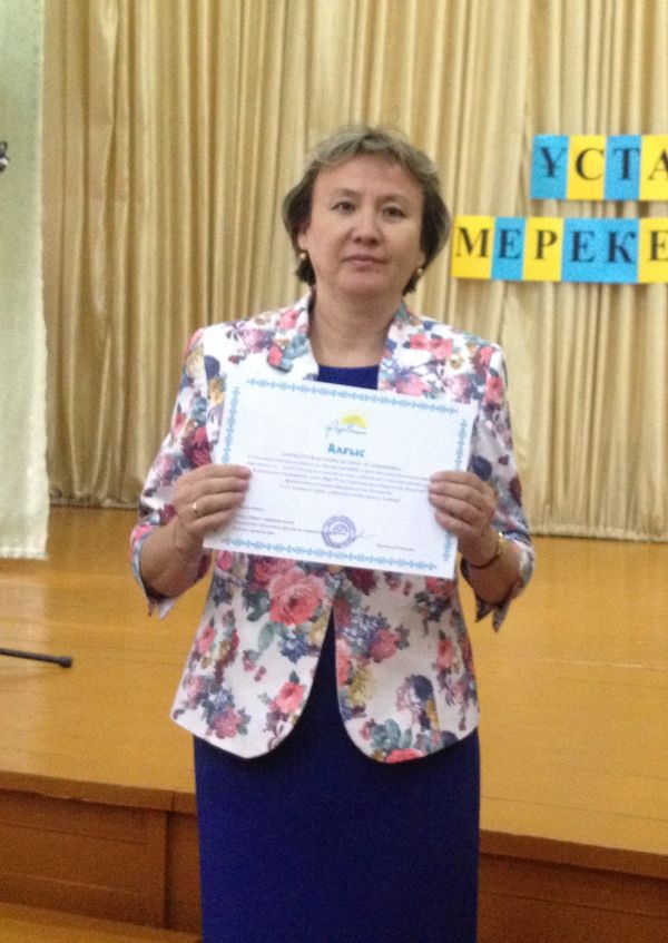 Мектептің «Бастау» шахмат үйірмесінің жетекшісі Цой Владимир Ивановичті Мұғалімдер күніне арналған «Ардагер-2015» ҚФ пен Қарағанды қ. Білім бөлімі арасында шахматтан өткен жо…