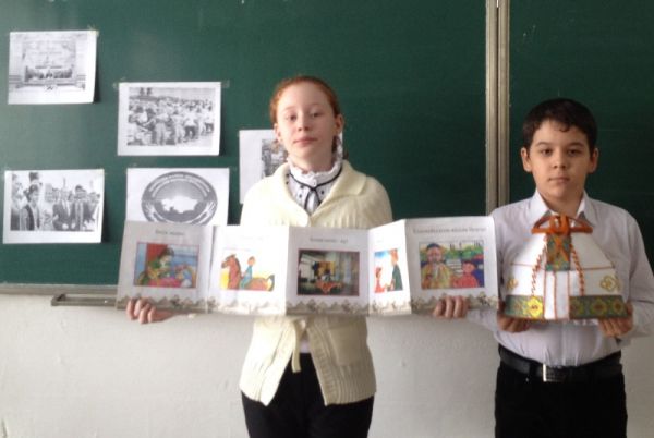 Оқушылар ұлттық киімдермен презентация көру арқылы танысты. Қуыршақтар үшін өз қолымен қағаздан ұлттық киім жасады.