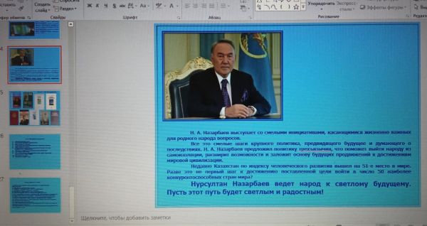 Тұңғыш президент күні мерекесінеорай мектебімізде 30.11.20ж. 9 Ә және 10 Ә сынып оқушылары арасында «Қазақстанның әлемдік қоғамдастықтағы жетістіктері» тақырыбы аясында онлай…