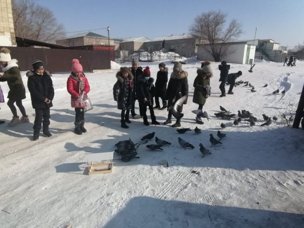 №82 ЖББ орта мектептің 4 А сынып оқушылары құстарға қамқорлық жасап, аязды күні оларды тамақтандыруға шықты. Оқушылар табиғаттың керемет тіршілік иелеріқұстарға ұя жасап, жем шашып көмек берді…