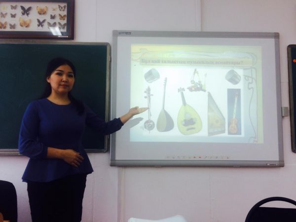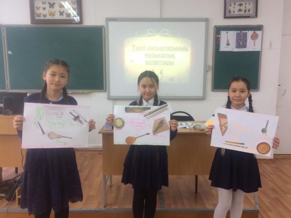 2020 жылы 24 қаңтарда №82 ЖББОМ-де эстетикалық цикл мұғалімдерінің ӘБ апталығы аясында музыка пәнінің мұғалімі Курманова К. К. 5 Ә сыныбында «Түркі халықтарының музыкалық аспаптары»…