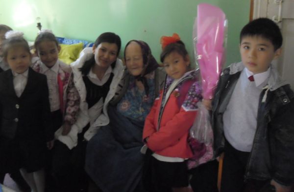 7 «ә»сынып оқушылары Ұлы Отан соғысының тыл ардагері Раиса Ивановнаны Жеңіс мерекесімен құттықтады.