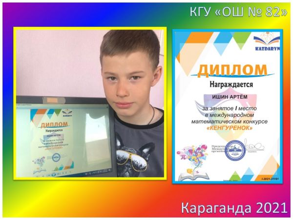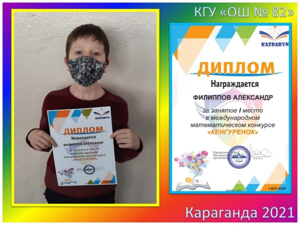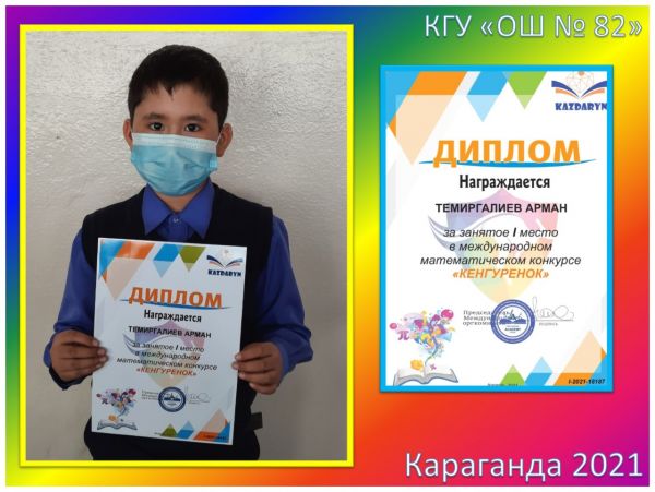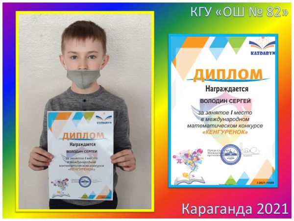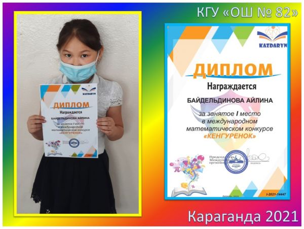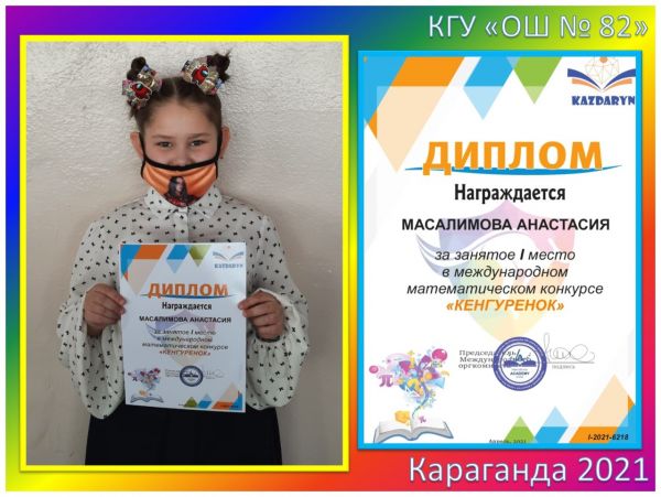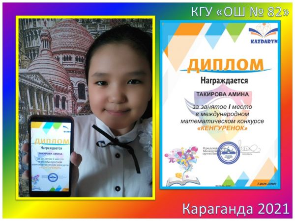 Поздравляем победителей 3В класса КГУ «ОШ №82» за занятое I место в Международном математическом конкурсе «Кенгуренок»: Асташенко Полину, Байбулатову…
