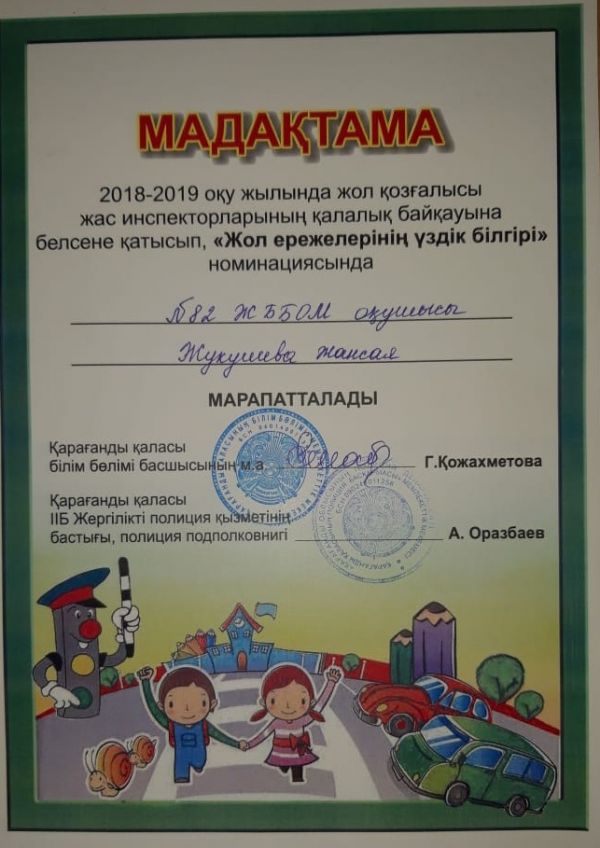 В Республиканском конкурсе «Талаптылар» по номинации «Көркем жазу» ученик 1 Ә класса Жақия Жанасыл занял 1 место. Поздравляем с победой!