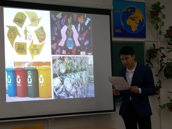 В 9 Ә классе был классный часна тему «Твердые бытовые отходы». Учащиеся говорили о видах и вреде твердых бытовых отходов, делились мнениями как правильно использовать бытовые отходы.