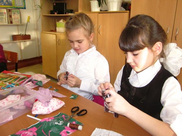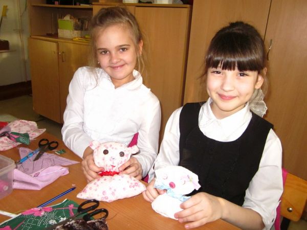 Еңбекке баулу сабағында 3 Б сыныбының оқушылары матамен жұмыс жасауды үйренеді. Олар өзіне жұмсақ ойыншық тігуді көрді.