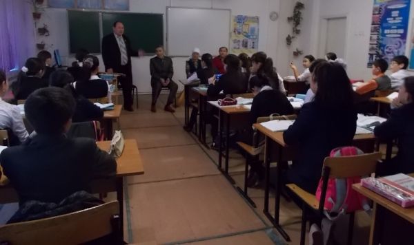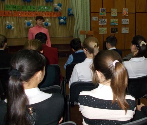25 октября 2014 г в рамках «Дня открытых дверей» учитель Сакимбаева А.Ш. по русскому языку  в 8 Ә классе провела открытый урок  «Звездный час». Учащиеся&nb…