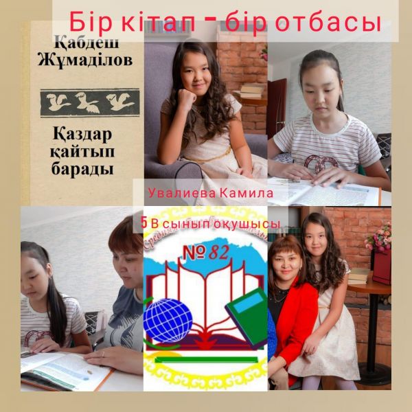 "БІР ОТБАСЫ – БІР КІТАП" акциясы аясында "ОҚЫРМАН ОТБАСЫ" облыстық байқауына қатысушы 5 "В" сынып оқушысы Увалиева Камила отбасымен түскен фотоколлажы.