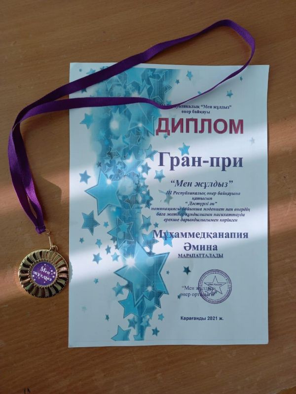 Учащаяся 4 Ә класса Мухаммадканапия Амина приняла участие в III Республиканском художественном конкурсе «Я - звезда» и получила Гран-при в номинации «Традиционная песня». Поз…