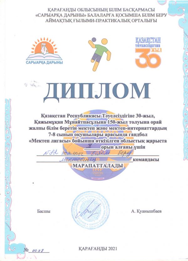 7 апреля 2021 года учащиеся «ОШ № 82» приняли участие в областных соревнованиях по гандболу «Школьная лига» среди 7-8 классов (девушки) посвящён…