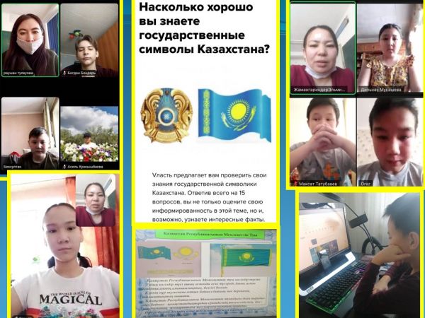 2021 жылдың 09 ақпанында №82 ЖББМ тарих пәні мұғалімдері Э.А. Жамангарина мен Р. К. Төлеуова 5-7 сынып оқушылары арасында Қазақстан Республикасының Мемлекеттік рәміздеріне байланысты, білімдерін тек…