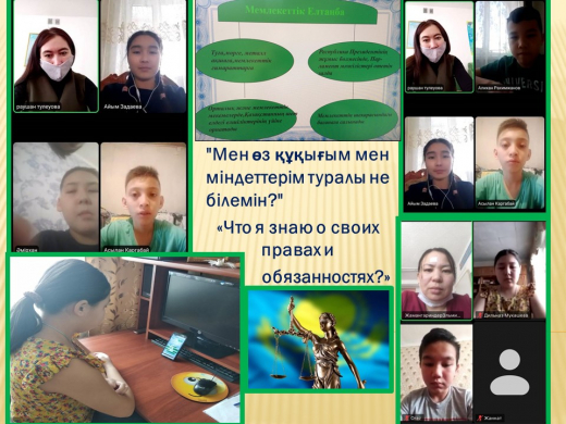 2021 жылдың 09 ақпанында №82 ЖББМ тарих пәнінің мұғалімі Р. К. Төлеуова "Мен өз құқығым мен міндеттерім туралы не білемін?" атты 5-7 сынып оқушылары арасында әдеби –құқықтық викторин…