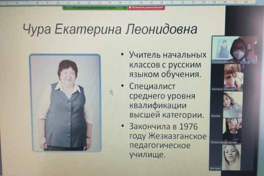 03.02.2021 11 Б сыныбымен "Тағдырдың керемет сәттері" тақырыбында Чура Е.Л. ұстазының қатысуымен онлайн-сабақ өткізілді.  Екатерина Леонидовна - 40 жыл кәсіби педагогикалық тәжірибе…