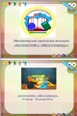 № 82 жалпы білім беретін мектебінде 25.01-30.01.2021 ж аралығында "Математика айналамызда" атты математика сауаттылығы апталығы өтуде. Осы апталықтың мақсаты:  Математикалық мәден…
