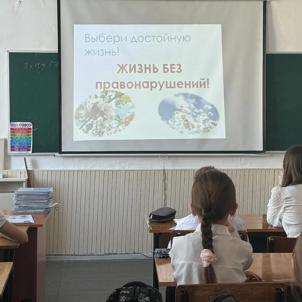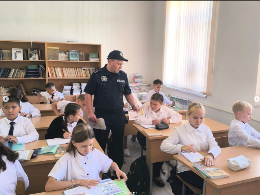 02.09.24 жылы полиция лейтенанты Р.Р. Бикбулатов 6Б сынып оқушыларымен ЖҚЕ, буллинг, лудомания, балалардың түнгі уақытта үйден тыс жерде өз бетінше болуы тақырыбында дәріс өткізіді.