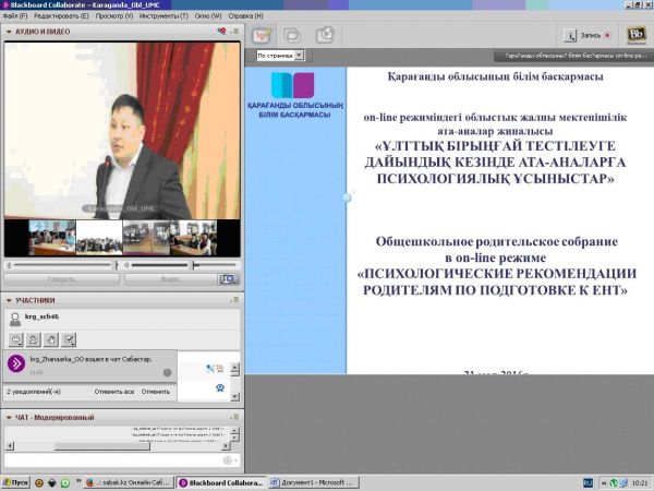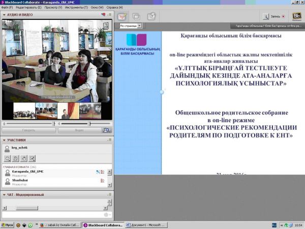 Общешкольное родительское собрание в on-line режиме «Психологические рекомендации родителям по подготовке к ЕНТ»