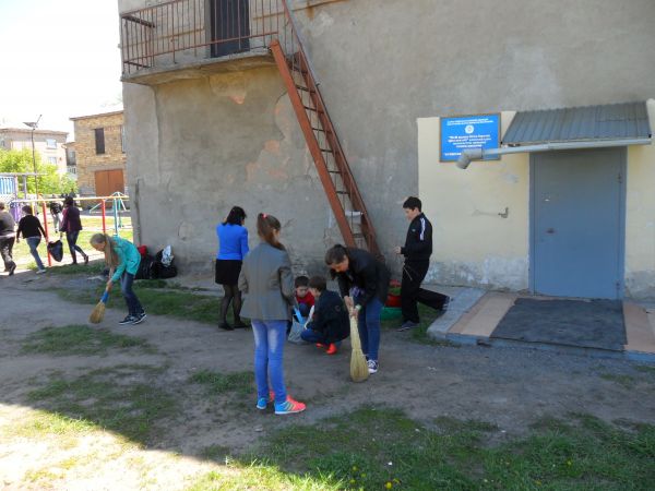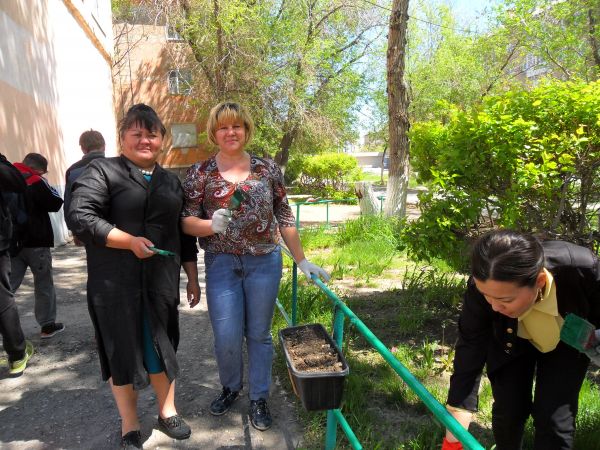 Субботник на территории школы. Уборка, покраска, побелка, доустановка клумб для цветника, облагораживание территории.
