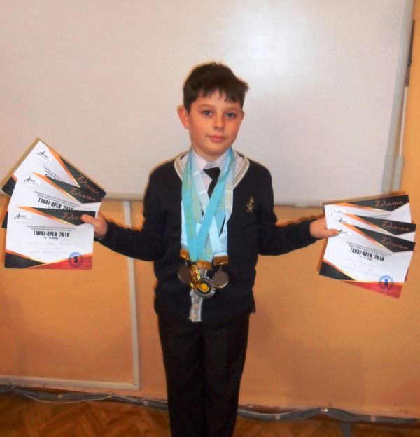 Кудва Кирилл, ученик 3а класса занял 1, 2, 3 места в разных категориях в Международном турнире по спортивным танцам TARAZ-OPEN 2016