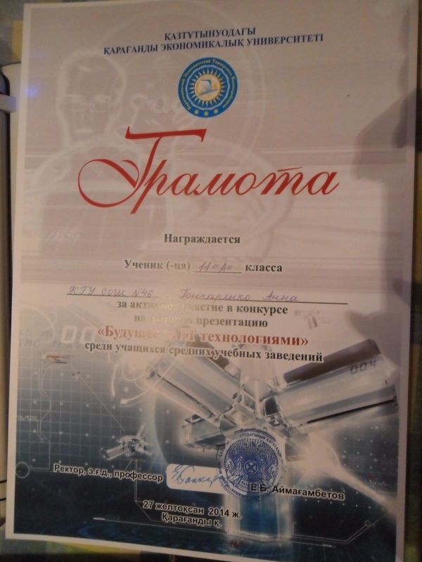 Поздравляем учениц 9 класса Гнездилову Александру и Кашкарову Диану и руководителя проекта Затонскую Веру Васильевну, занявших ВТОРОЕ МЕСТО в республиканском конкурсе проектов "Моя родина - мой…