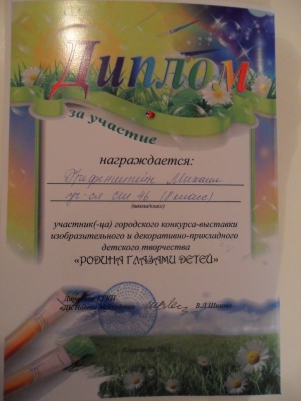 Награждение участников городского конкурса - выстаки и декоративно - прикладного детского творчества "Родина глазами детей"