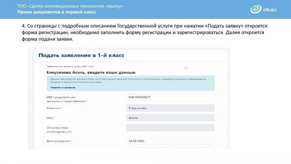 Приём документов в первый класс через сайт https://e.bilimal.kz