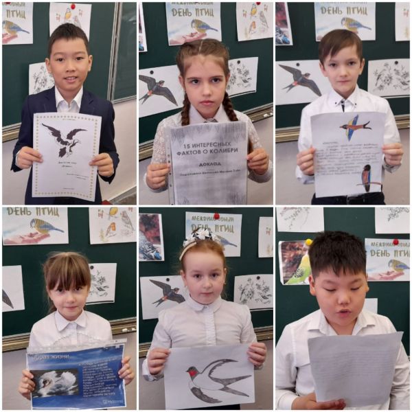 4 сыныптарда Құстар күніне орай "Кемпірқосақ құстары" суреттер көрмесі өтті.   В 4-х классах ко Дню птиц прошла выставка рисунков «Радужные птицы».