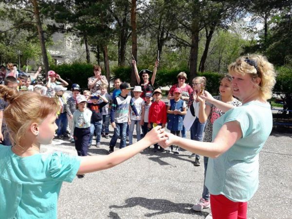 9 июня ребята из летнего лагеря начали день с зажигательной зарядки. Ковбои в этот день отправились в бассейн, а пираты посмотрели сказку.