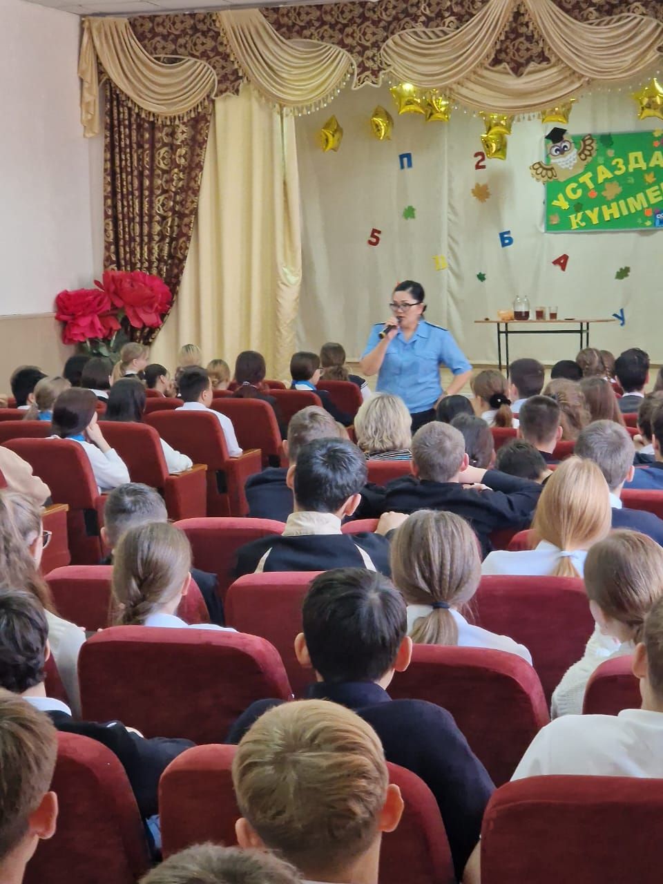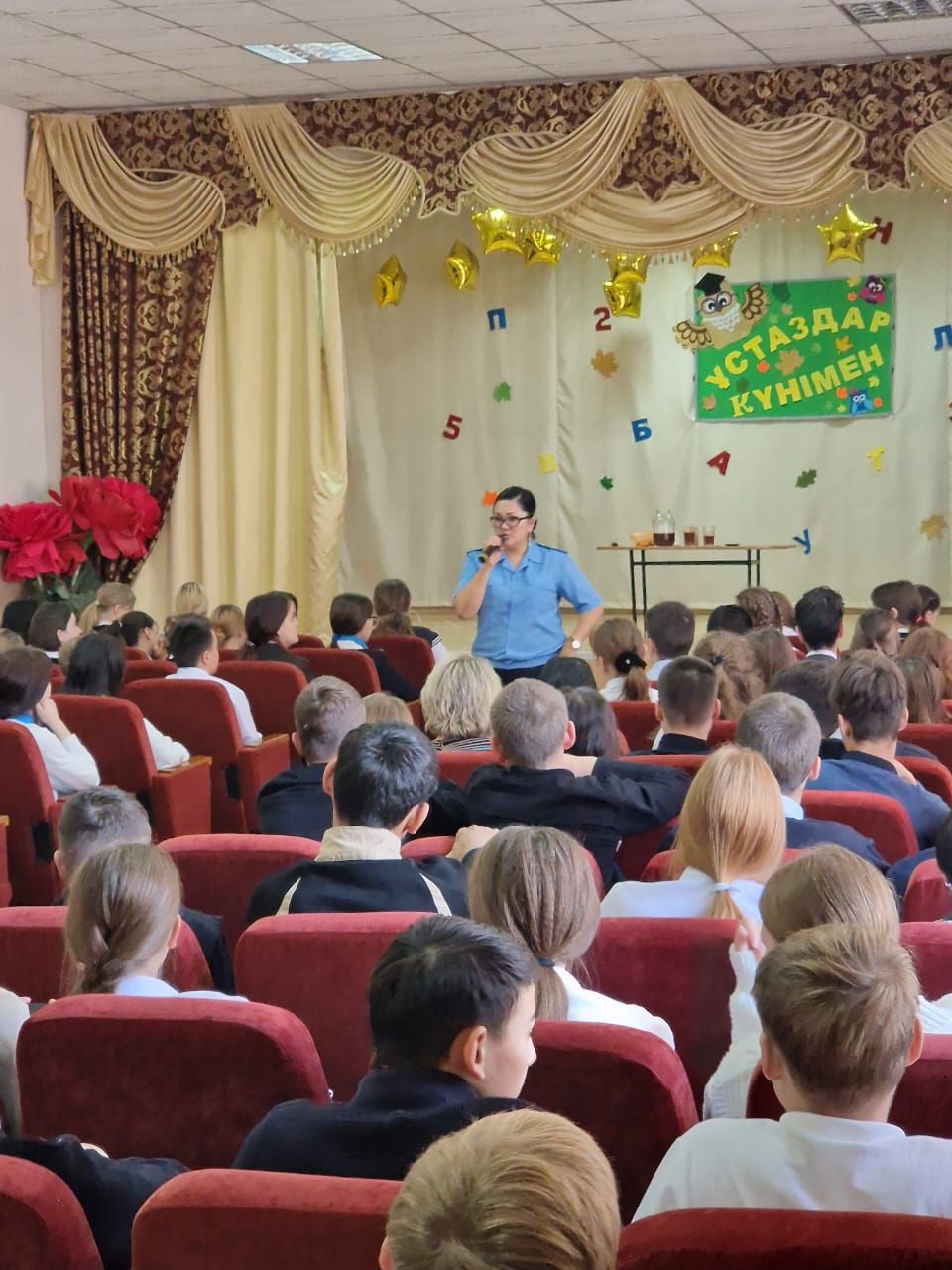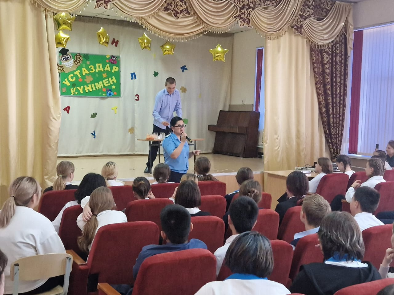 2023 жылғы 20 қазанда 9-сынып оқушыларынан 37 оқушы Қарағанды қ. ПБ теміржол полиция лейтенанты Бикбулатов Руслан Радиковичпен кездесті. Полиция лейтенанты оқушыларға