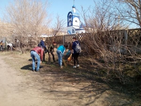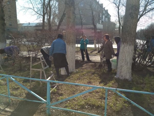Стартовала работа «Экологического отряда» в школе в рамках программы «ЖАЗ-2019». Бойцы отряда занимаются благоустройством территории школы.