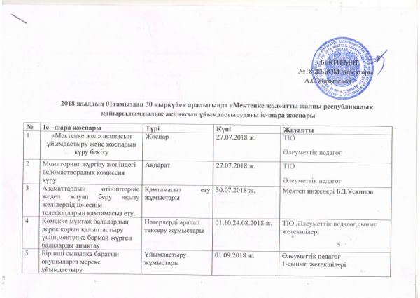 1 тамыз- 30 қыркүйек 2018 ж.аралығында «Балаға көмек берейік» ұранымен жыл сайынғы жалпы республикалық «Мектепке жол» акциясы өткізілуде. Жыл сайын дәстүрлi түрде…