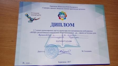 Награждается ученик 8 «А» класса Каратай Дамир за занятое III место по Кекушинкай Каратэ «Белый кубок» на чемпионате Карагандинской области