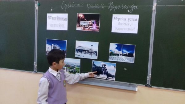 14.02.2018 ж.күні Қала күніне орай «Сүйікті қалам-Қарағанды» тақырыбында 1-11 сыныптар аралығында сынып сағаттары өтілді.